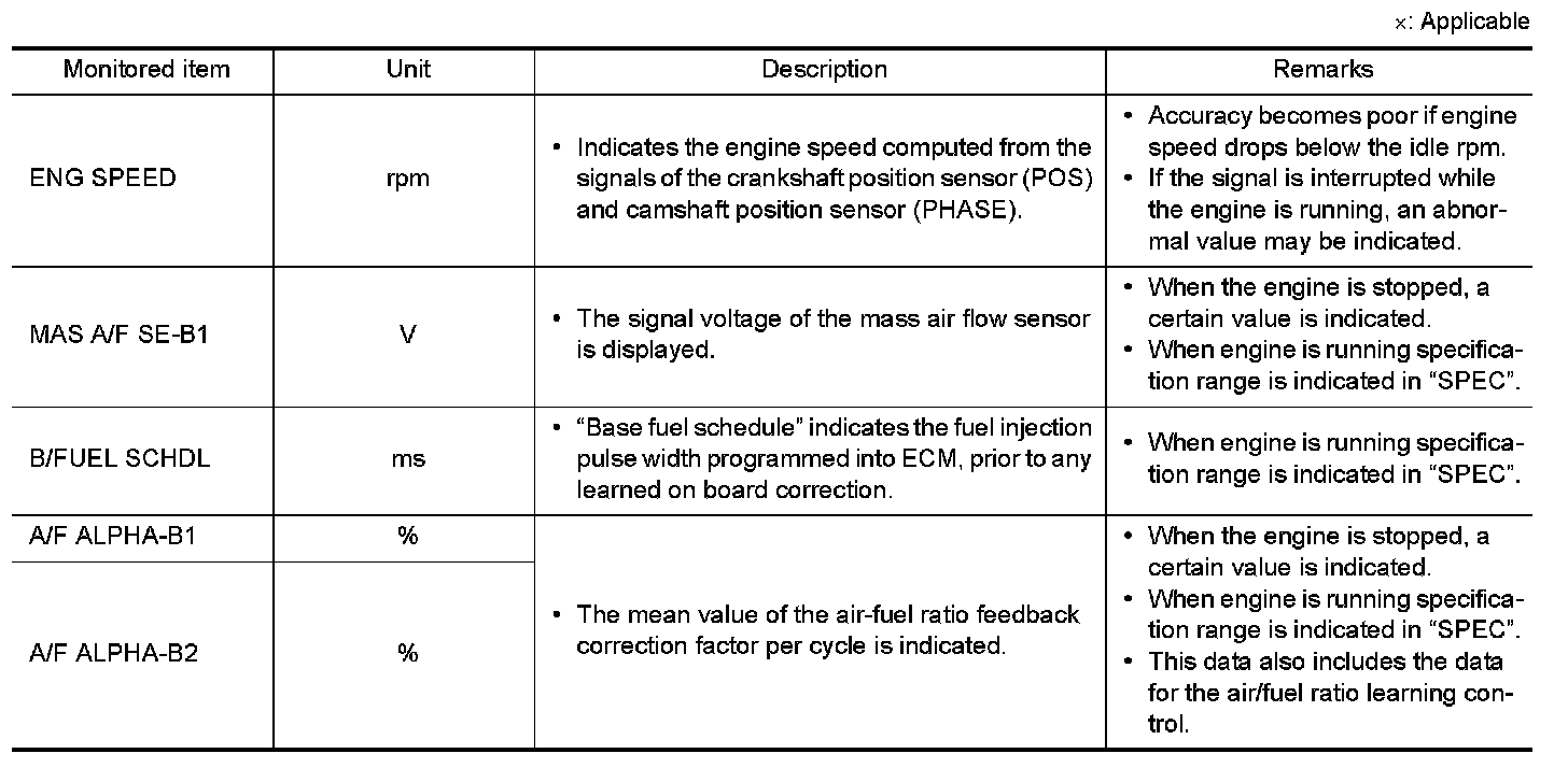 Any monitored item that does not match the vehicle being diagnosed is deleted from the display automatically.
