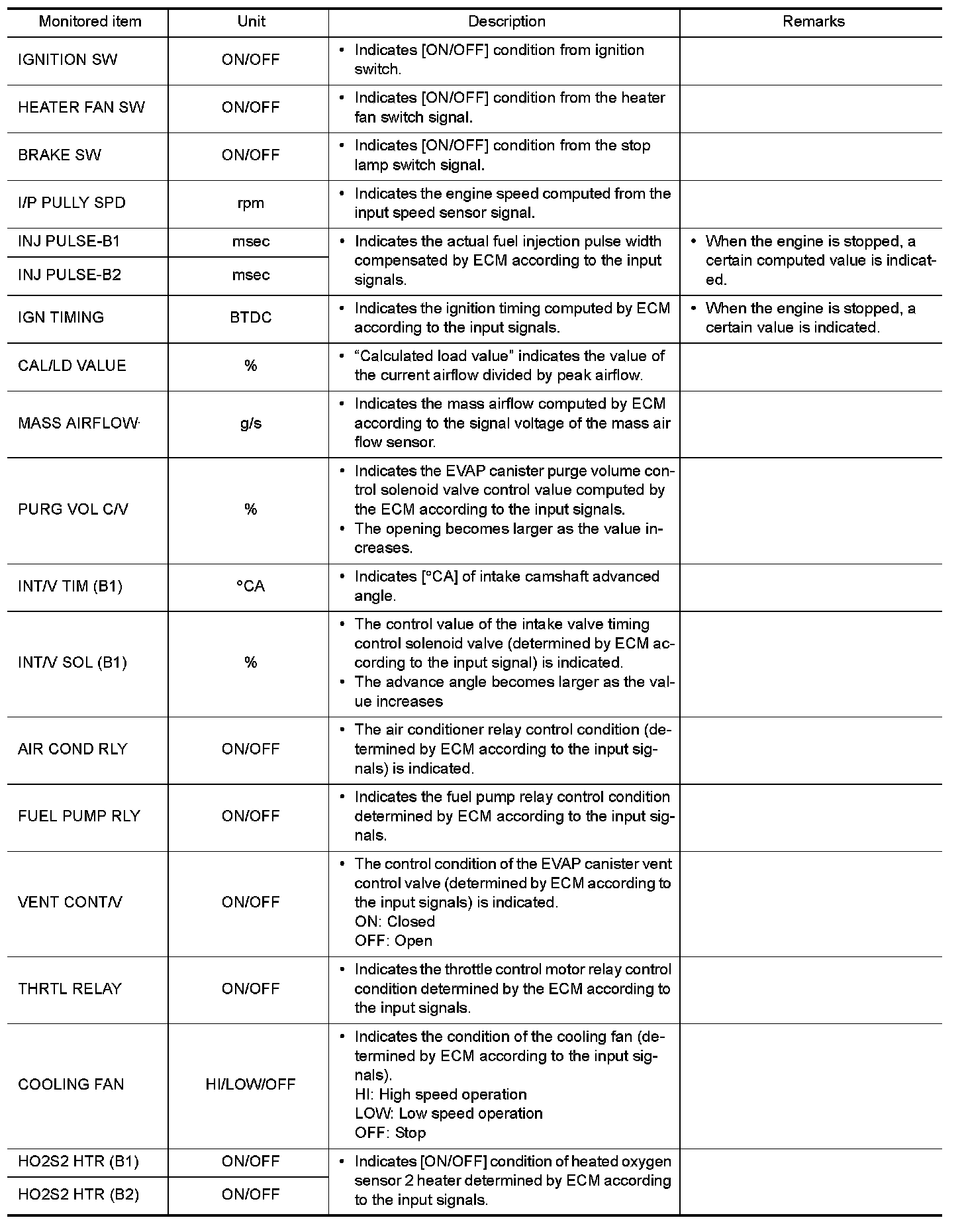 - If "TIME" is neither "0" nor "1t", the DTC occurred in the past and ECM shows the number of times the vehicle has been driven since the last detection of the DTC.