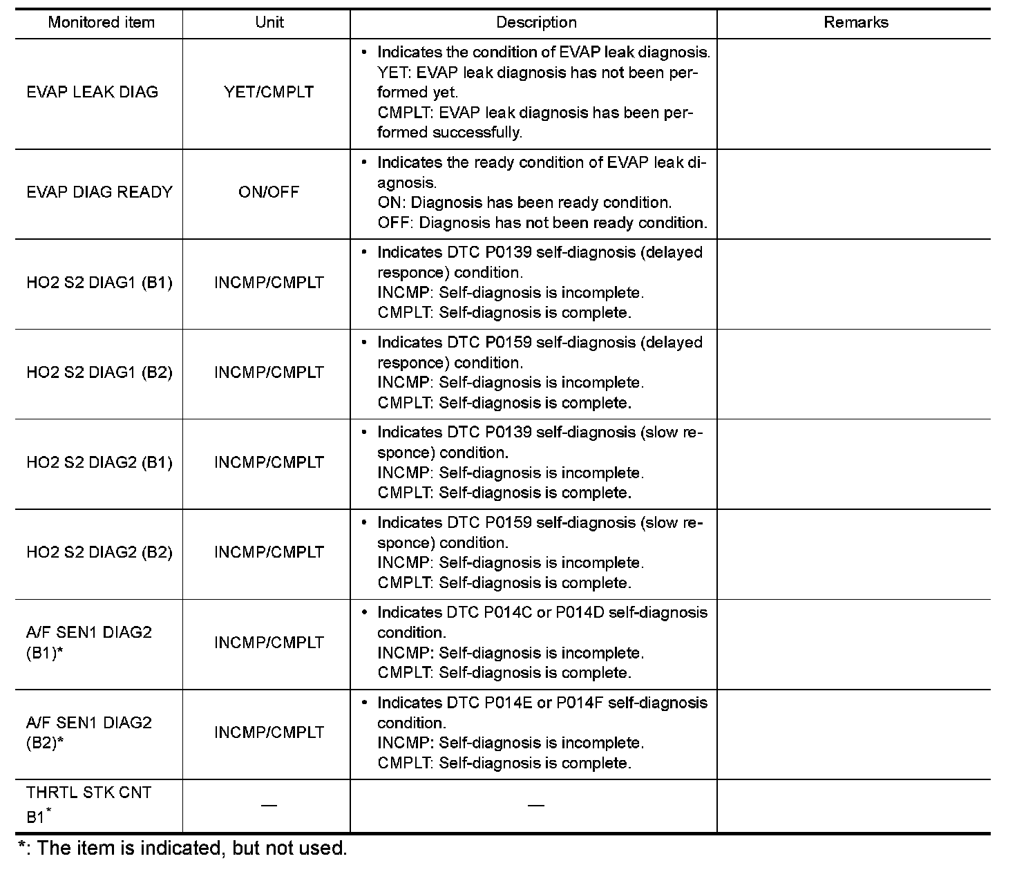 - For items whose SRT codes are set, "CMPLT" is displayed on the CONSULT screen; for items whose SRT
