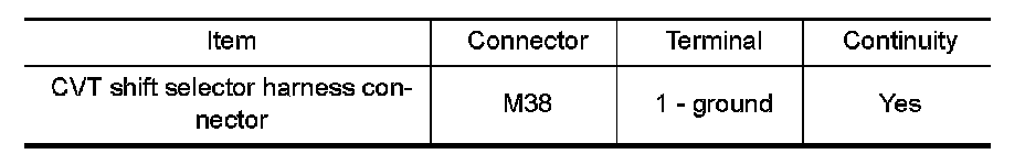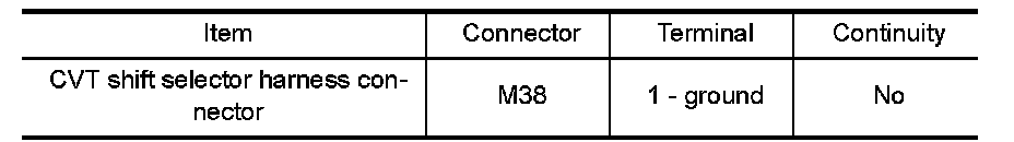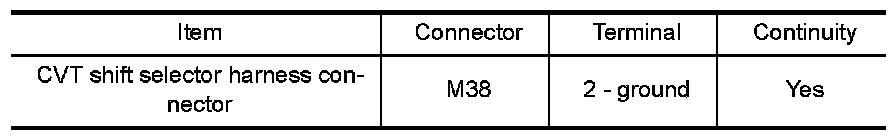 Check continuity between CVT shift selector harness connector terminal and ground.