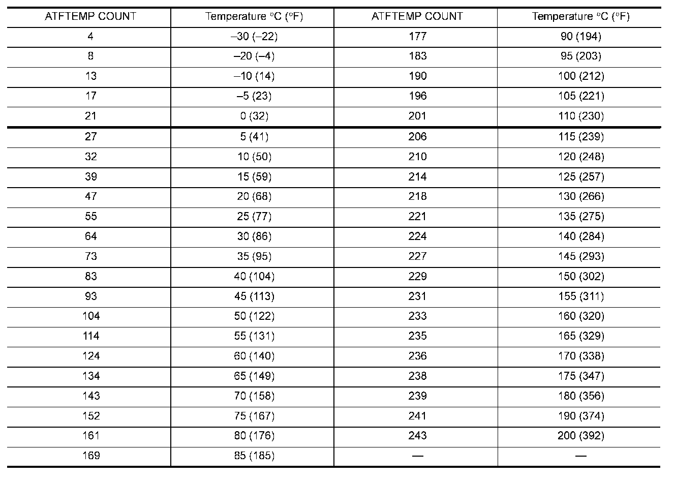 ATFTEMP COUNT Conversion Table