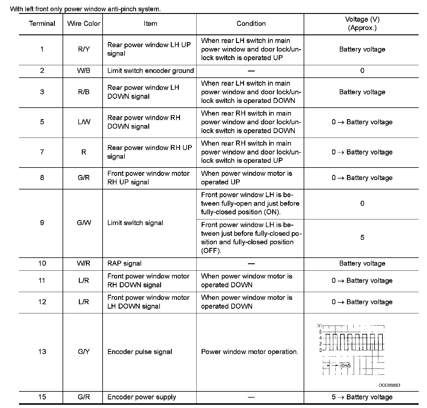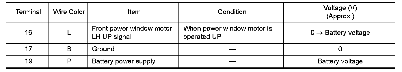 Terminal And Reference Value For Main Power Window And Door Lock/Unlock Switch