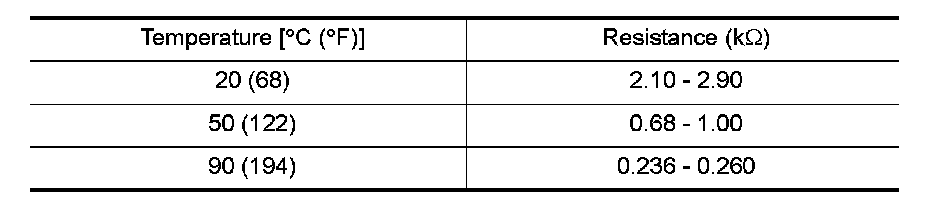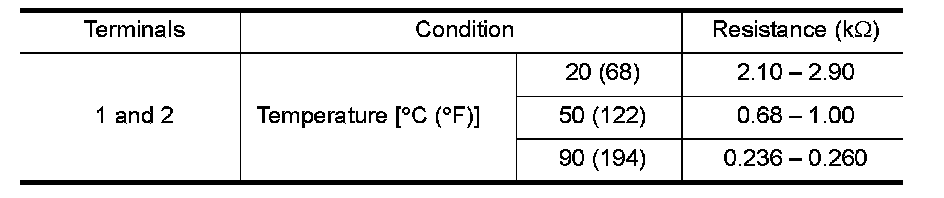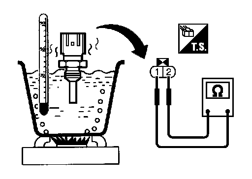 1.Check resistance between engine coolant temperature sensor terminals 1 and 2 as shown in the figure.