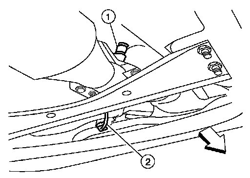 2.Disconnect heated oxygen sensor 2 harness connector (2).
