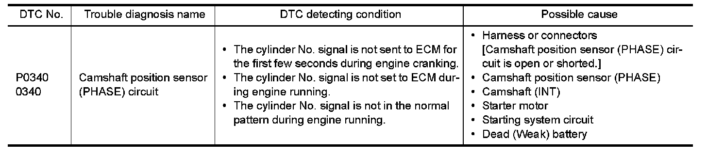 DTC P0340 CMP SENSOR (PHASE)