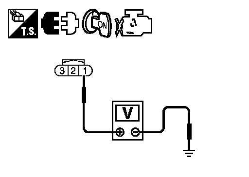 3.Check voltage between CMP sensor (PHASE) terminal 1 and ground with CONSULT or tester.