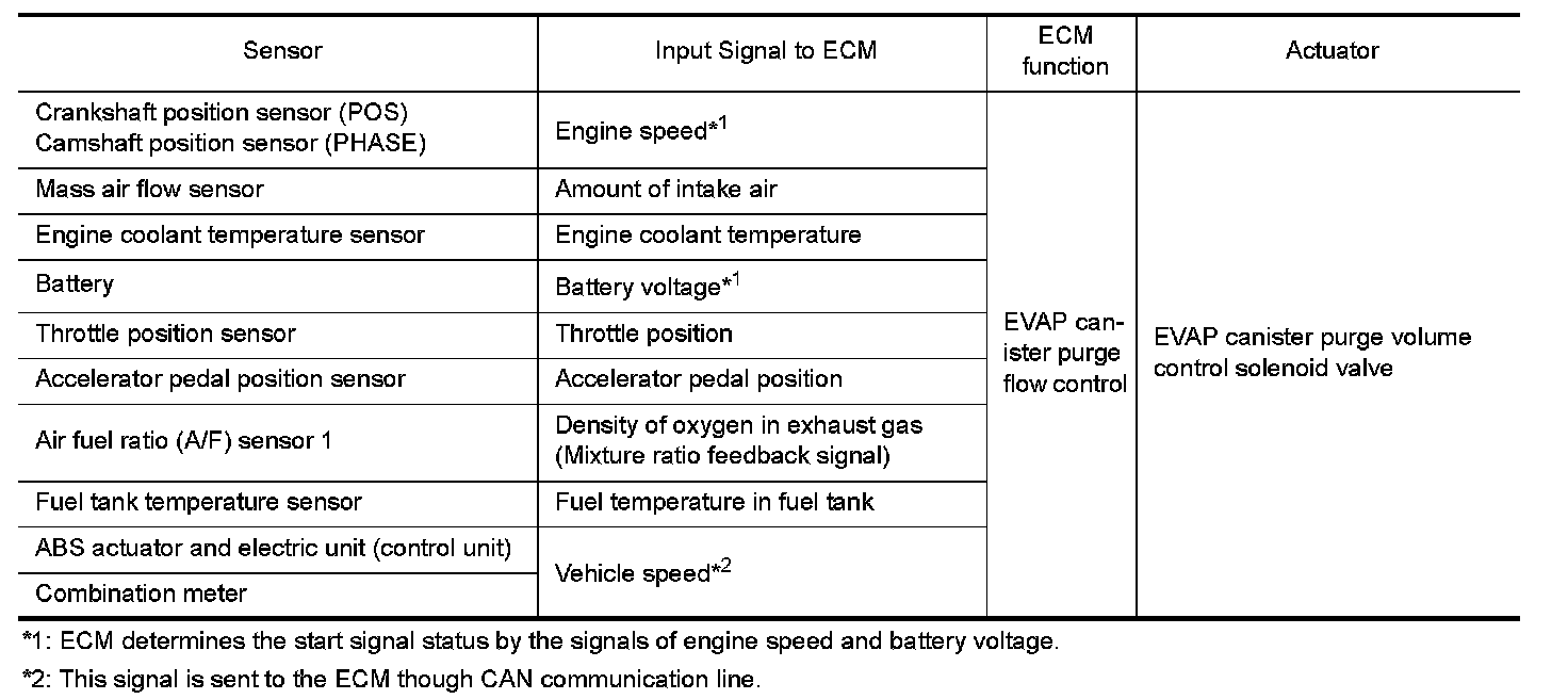 ECM. The opening of the valve varies for optimum engine control. The optimum value stored in the ECM is determined by considering various engine conditions. When the engine is operating, the flow rate of fuel vapor from the EVAP canister is regulated as the air flow changes.