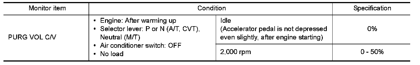 4.Perform "PURG VOL CONT/V" in "ACTIVE TEST" mode with CONSULT. Check that engine speed varies according to the valve opening.