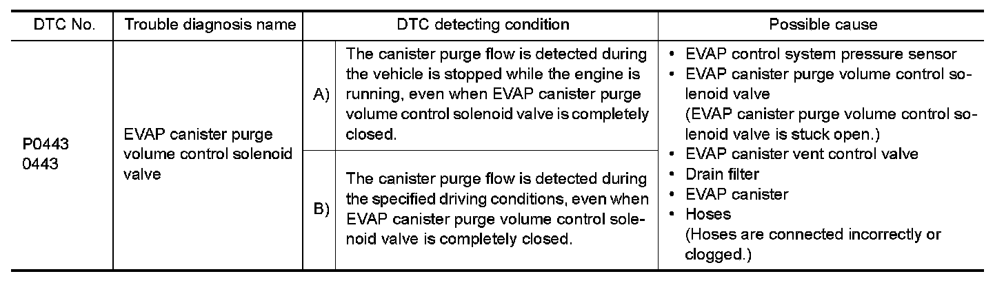 DTC P0443 EVAP CANISTER PURGE VOLUME CONTROL SOLENOID VALVE