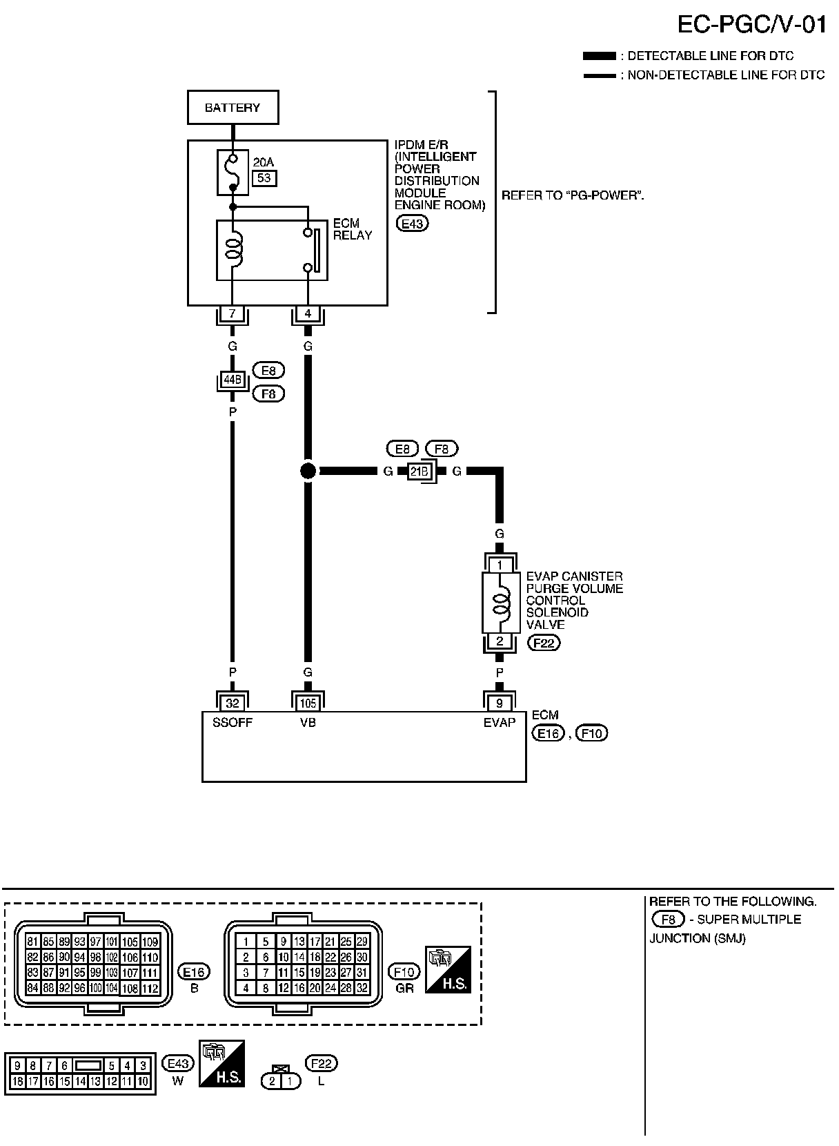 - Harness for open or short between EVAP canister purge volume control solenoid valve and IPDM E/R