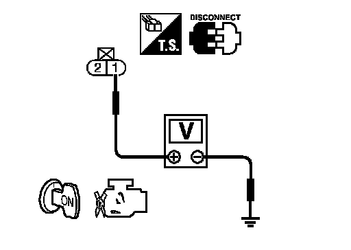 4.Check voltage between EVAP canister purge volume control solenoid valve terminal 1 and ground with CONSULT or tester.