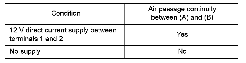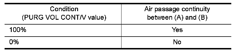 Check air passage continuity of EVAP canister purge volume control solenoid valve under the following conditions.