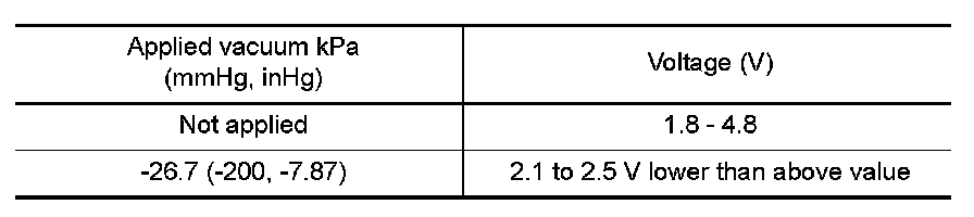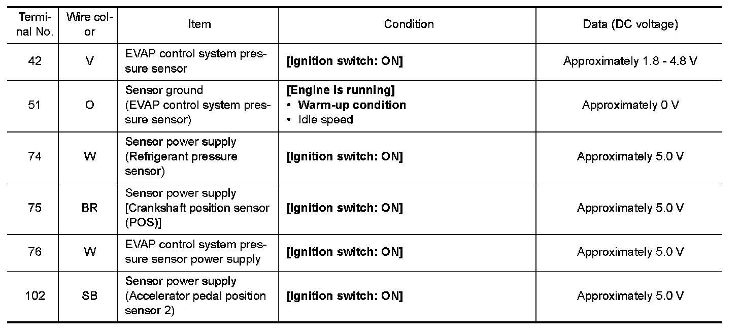 terminal 42 (EVAP control system pressure sensor signal) and ground under the following conditions.