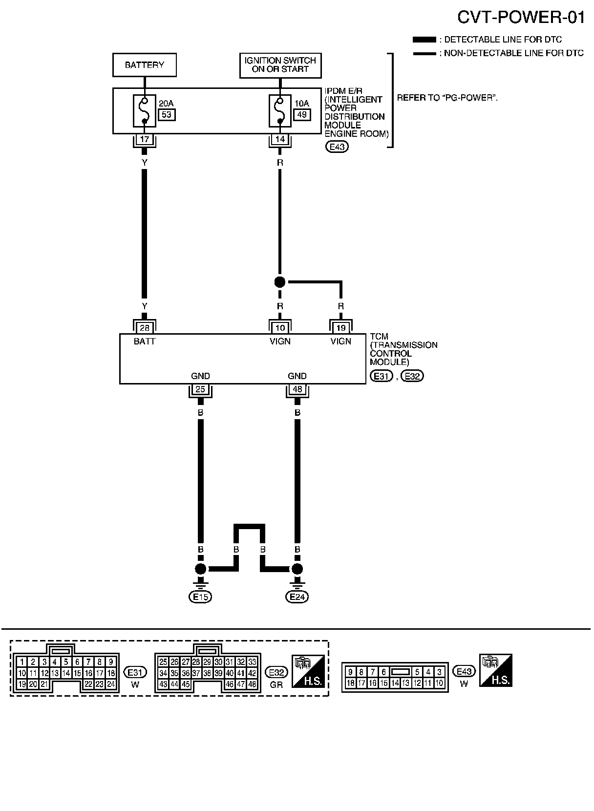 - Diagnostic trouble code "P1701" with CONSULT is detected when TCM does not receive the voltage signal from the battery power supply.