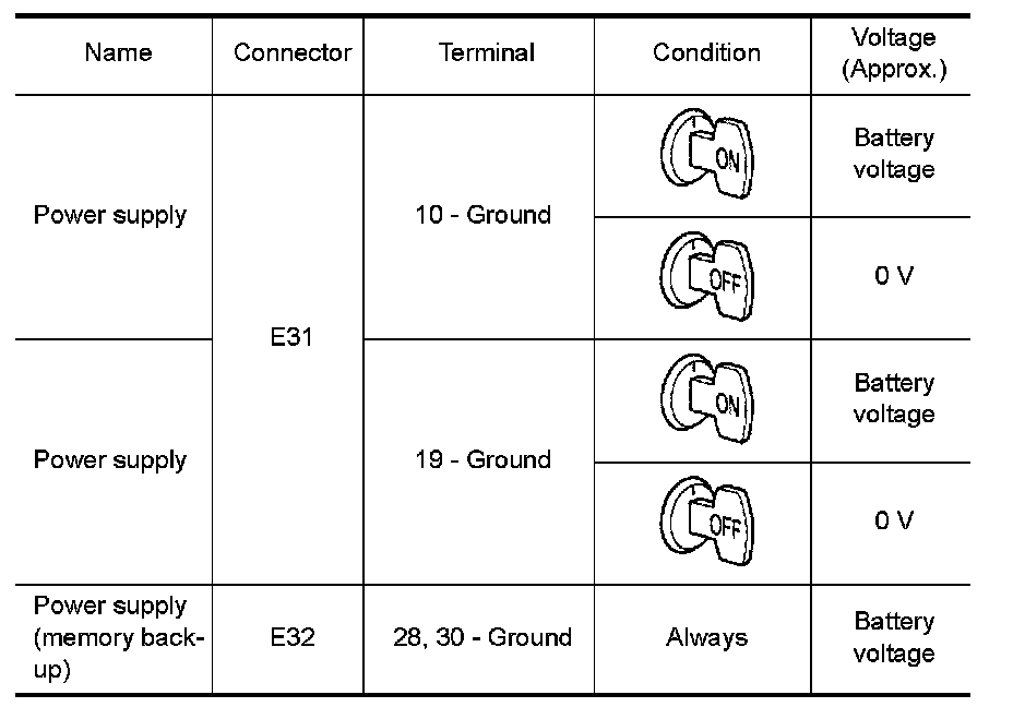 When the power supply to the TCM is cut OFF, for example because the battery is removed, and the self-diagnosis memory function stops, malfunction is detected.