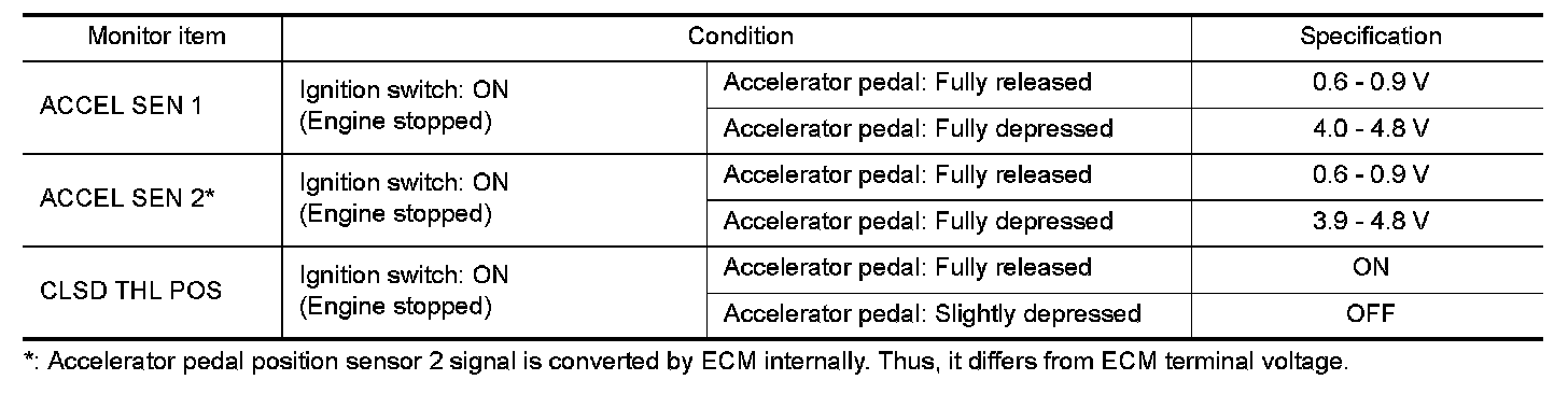 receiving the signal from the accelerator pedal position sensor. The ECM uses this signal for the engine operation such as fuel cut.