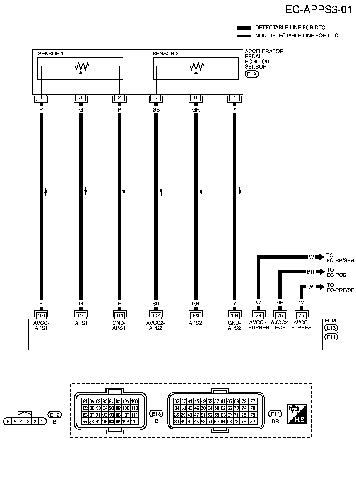 ECM terminal 110 and APP sensor terminal 3, ECM terminal 103 and APP sensor terminal 6.