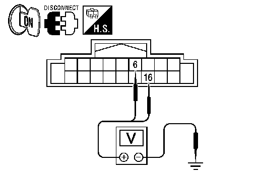 3.Check voltage between audio unit harness connector M43 terminals 6, 16 and ground.
