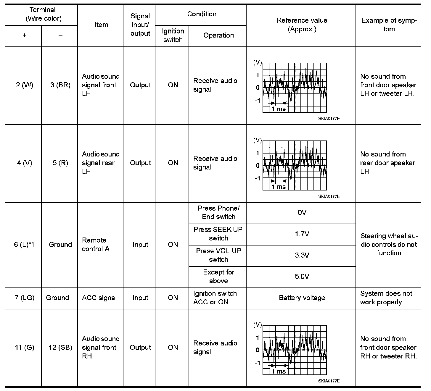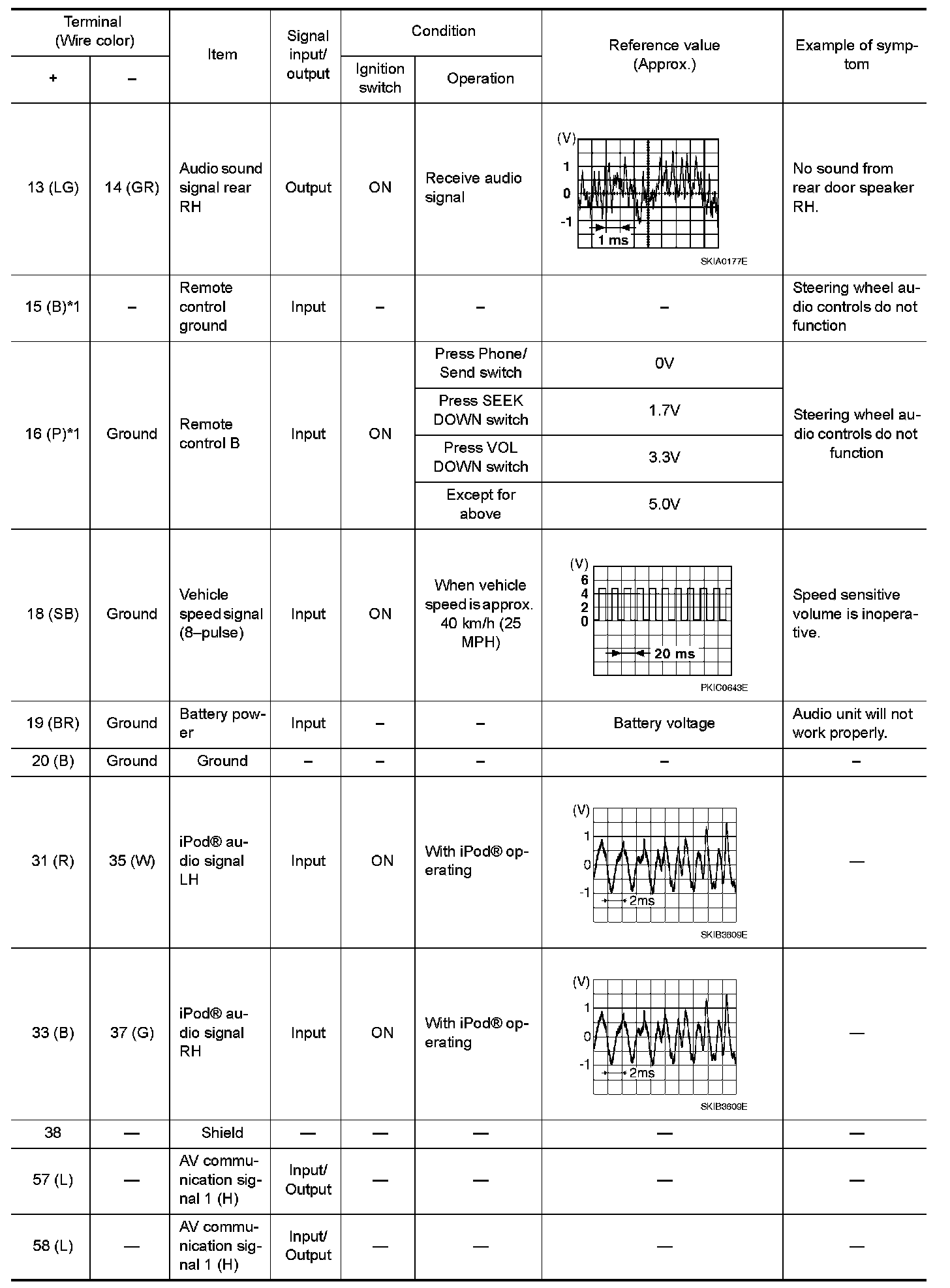 Pinout Values and Diagnostic Parameters