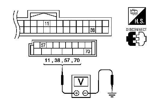 3.Check voltage between BCM connectors and ground.