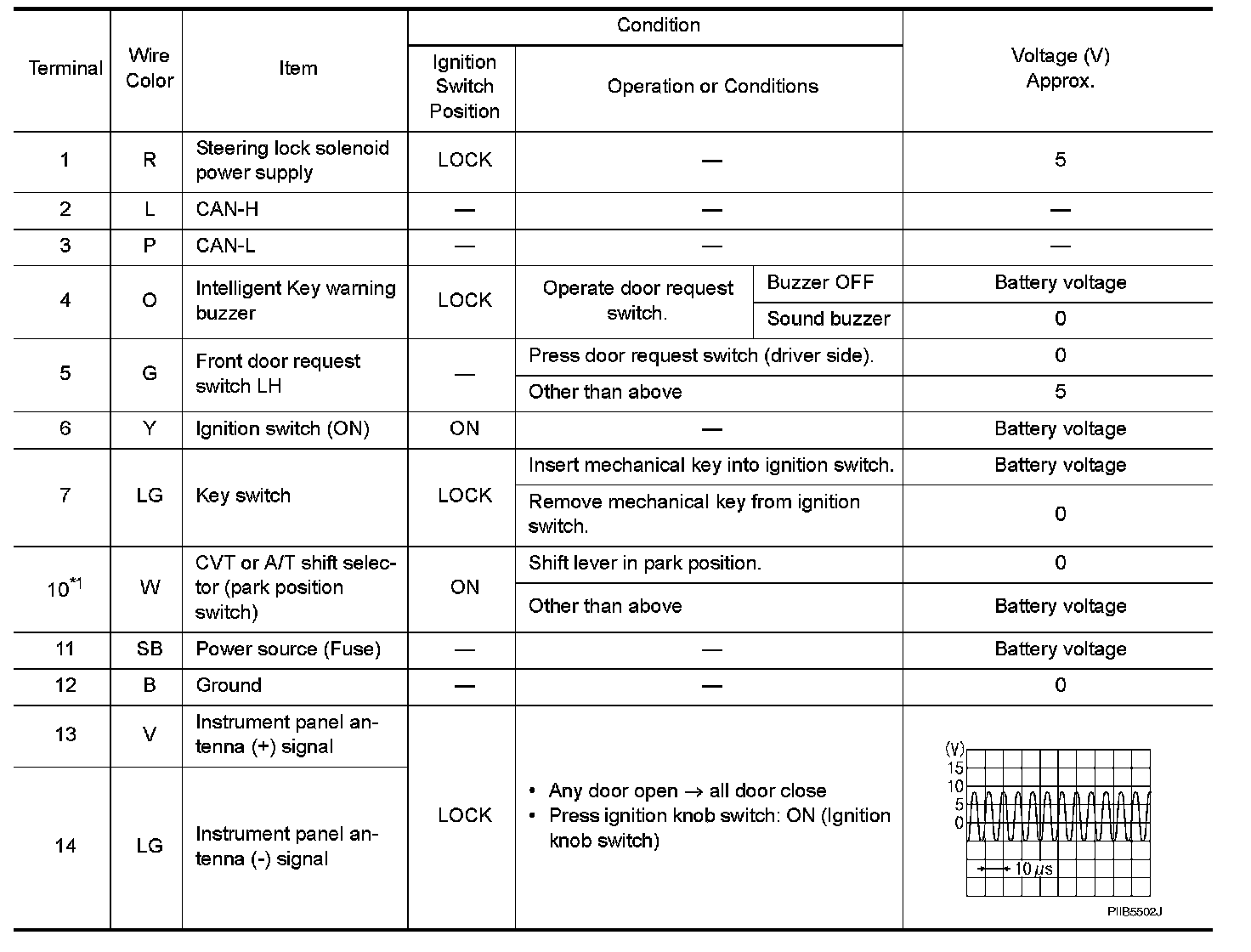 Pinout Values and Diagnostic Parameters