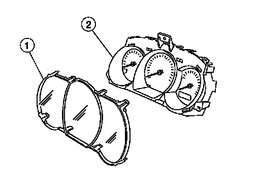 Disengage the eight tabs to separate front cover (1) from the unified meter control unit assembly (2).