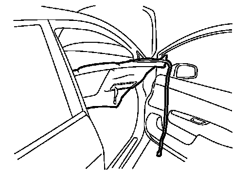 15.Position the headlining so the rear edge goes through the opening of the left rear door, then remove headlining.