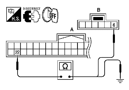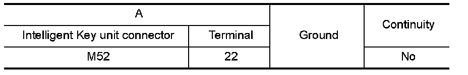 4.Check continuity between Intelligent Key unit connector (A) terminal 22 and ground.
