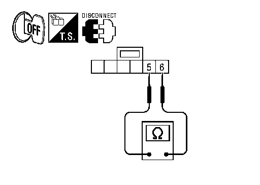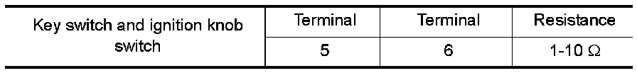 Check resistance between key switch and ignition knob switch terminals 5 and 6.