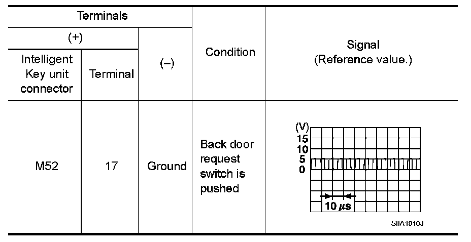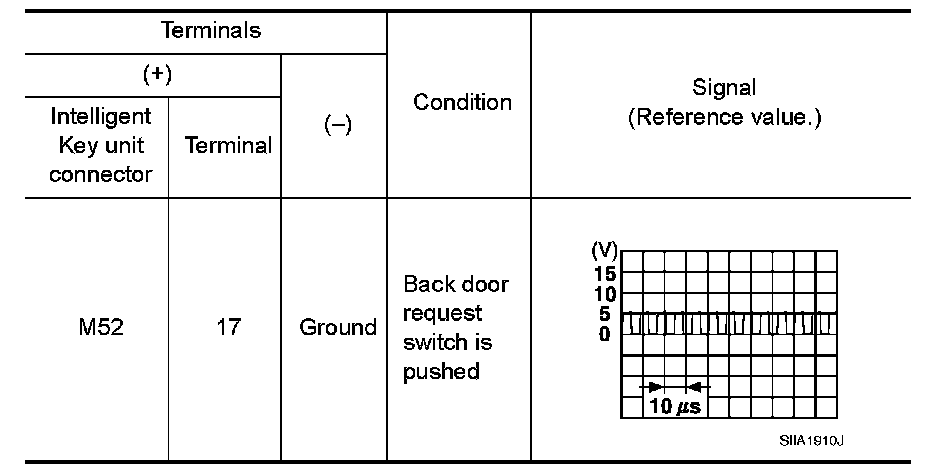 2.Check signal between Intelligent Key unit connector and ground with oscilloscope.