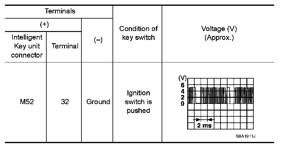 Check signal between Intelligent Key unit and ground with oscilloscope.