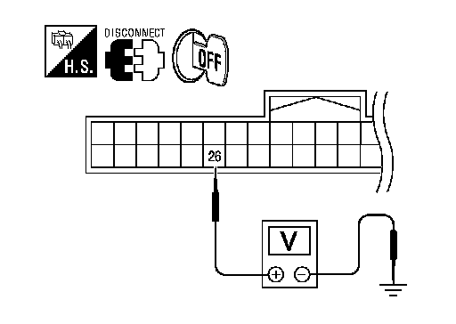 1.Check continuity between Intelligent Key unit harness connector (A) M52 terminal 26 and stop lamp switch harness connector (B)