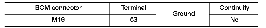 3.Check continuity between BCM connector (A) M19 terminal 53