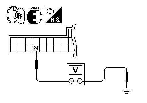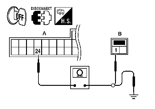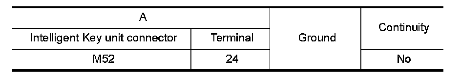 4.Check continuity between Intelligent Key unit connector (A) M52 terminal 24 and ground.