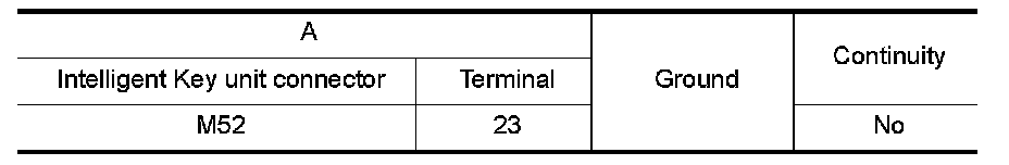 2.Check continuity between Intelligent Key unit connector (A) M52