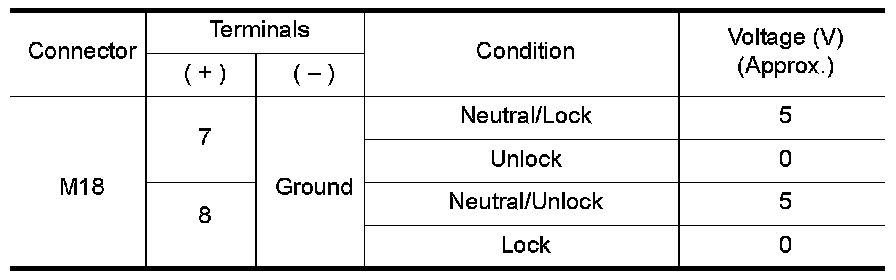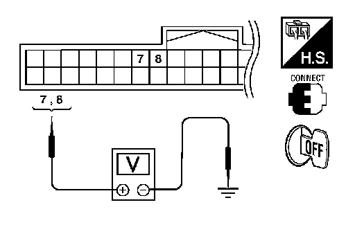 Check voltage between BCM connector M18 terminals 7, 8 and ground.