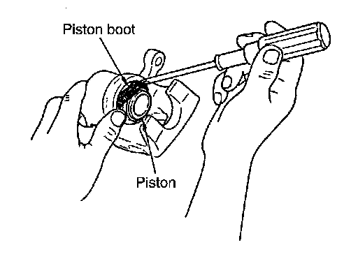 3.Press piston into cylinder body by hand to assemble piston-side lip on piston boot properly into a groove on piston.