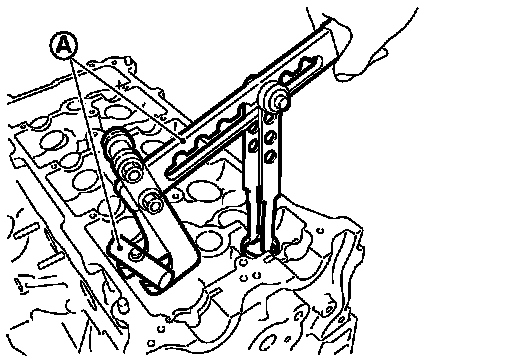 - Compress valve spring using Tool, attachment and adapter (A). Install valve collet with a magnet hand.