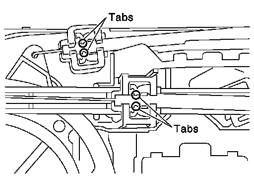 Install inner cable of each door cable to the corresponding lever, as shown in the figure. Press outer cable until it hooks on the tabs and becomes secure.