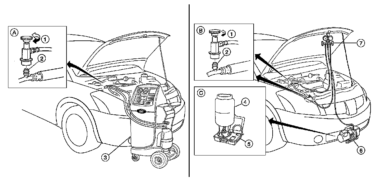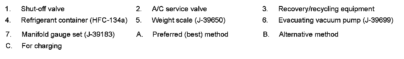 Remove HFC-134a (R-134a) refrigerant from the A/C system using certified service equipment meeting requirements of SAE J2210 HFC-134a (R-134a) recycling equipment or SAE J2201 HFC-134a (R-134a)