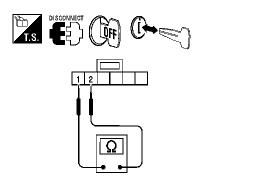 3.Check continuity between key switch and key lock solenoid terminals 1 and 2.