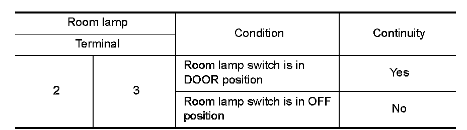 2.Check continuity between room lamp terminals.