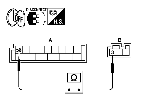 2.Check continuity between BCM harness connector M20 (A) terminal 56 and room lamp harness connector R7 (B) terminal 3.