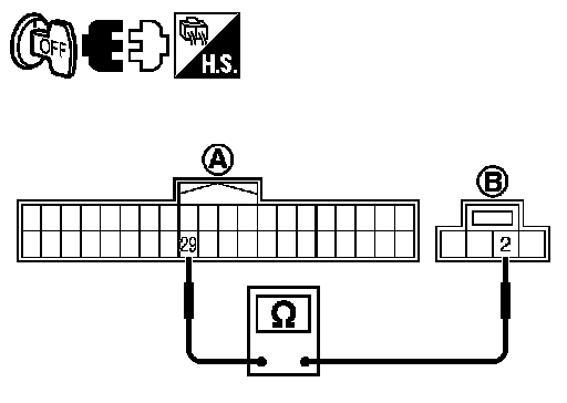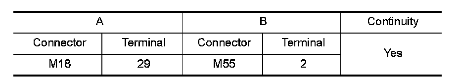 3.Check continuity BCM harness connector M18 (A) and hazard switch harness connector M55 (B).