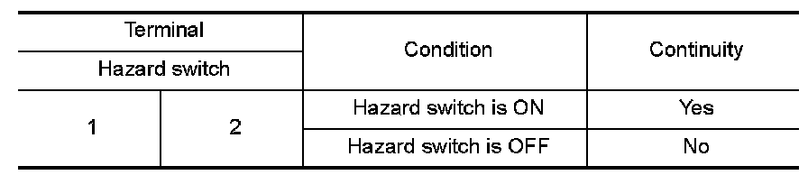 2.Check continuity hazard switch terminals.