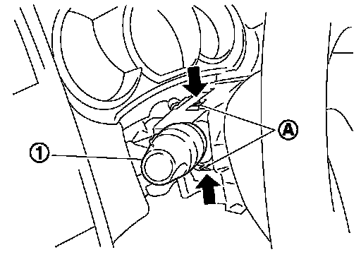 2.While pressing pawls (A) in direction as shown, pull lighting and turn signal switch (1) toward LH door and disconnect from the base.