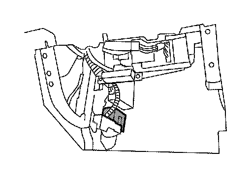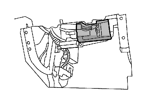 The remote keyless entry receiver is shown with the glove box removed. The remote keyless entry receiver receives the air pressure signal transmitted by the transmitter in each wheel.
