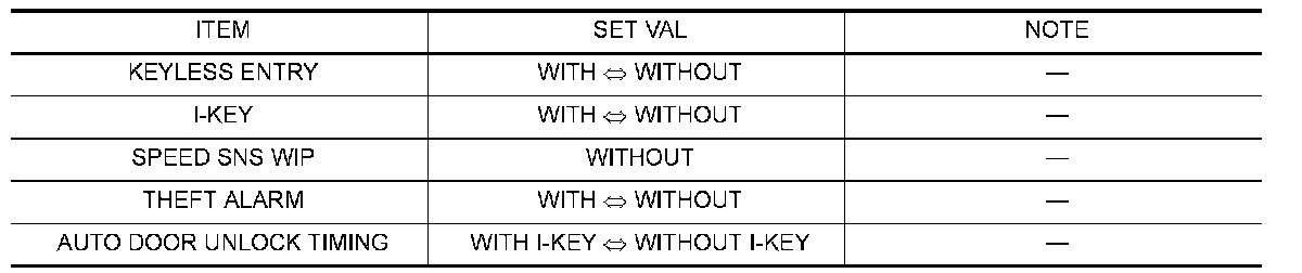 Depending on CONSULT software version being used, some or all of the write configuration items shown in the following configuration lists may be displayed. If an item does not appear on the CONSULT WRITE