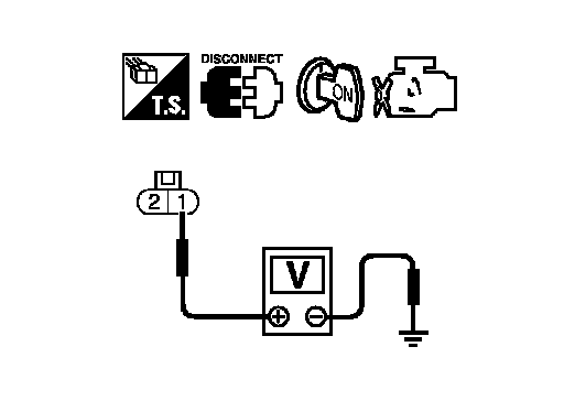 4.Check voltage between fuel injector terminal 1 and ground with
