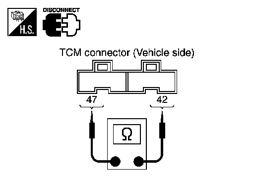 2.If NG, recheck TCM pin terminals for damage or loose connection with harness connector.
